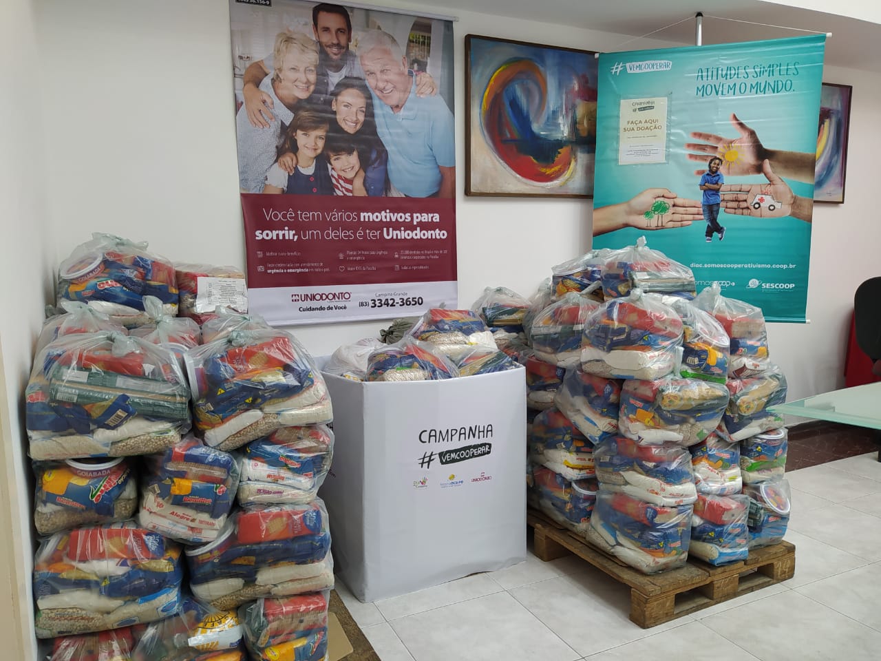 Em uma ação de intercooperação, a Uniodonto João Pessoa realizou a doação de 120 cestas básicas, o que equivale a cerca de duas toneladas de produtos, a cooperativas afetadas pela pandemia da Covid 19. A campanha de arrecadação de alimentos é uma iniciativa da cooperativa cadastrada no Dia de Cooperar (Dia C).