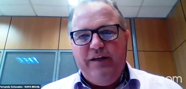 Primeiro palestrante da tarde, o secretário da Agricultura Familiar e Cooperativismo do MAPA, Fernando Schwanke, falou sobre a atuação do governo federal para minimizar os impactos da pandemia para os agricultores familiares e as ações voltadas para o cooperativismo. Entre as ações de mitigação, o secretário citou o aumento dos investimentos no Programa Nacional de Alimentação Escolar (PNAE) e no Programa de Aquisição de Alimentos (PAA), além da criação de um protocolo de segurança e sanidade para evitar a paralisação das feiras livres.